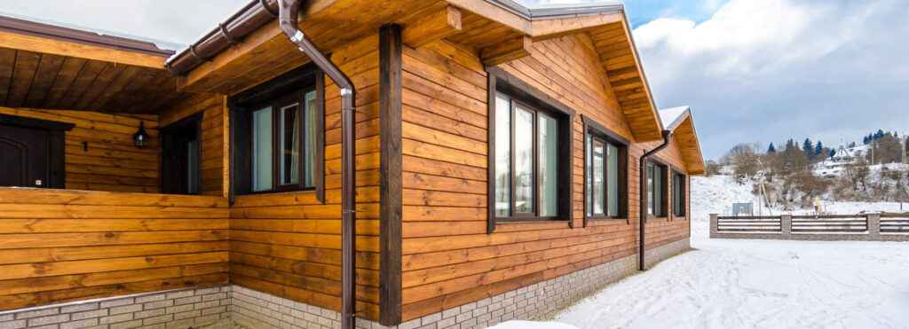 Пример: дом с фасадом из панелей под «золотой дуб» выглядит дорого и не требует утепления.