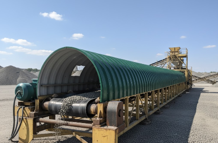 - Защита от механических повреждений. В условиях работы на открытых пространствах, на конвейеры могут попасть посторонние предметы (например, камни, строительный мусор), которые способны повредить оборудование.