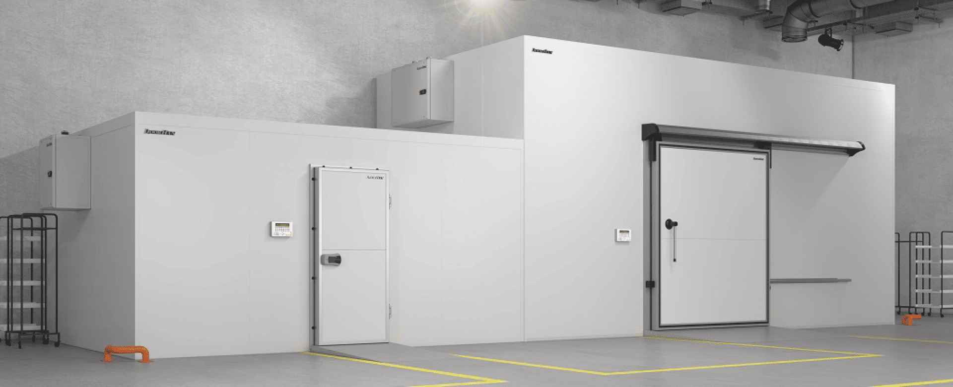 Монтируются в холодильные камеры супермаркетов и магазинов, обеспечивая надежное хранение скоропортящихся продуктов.