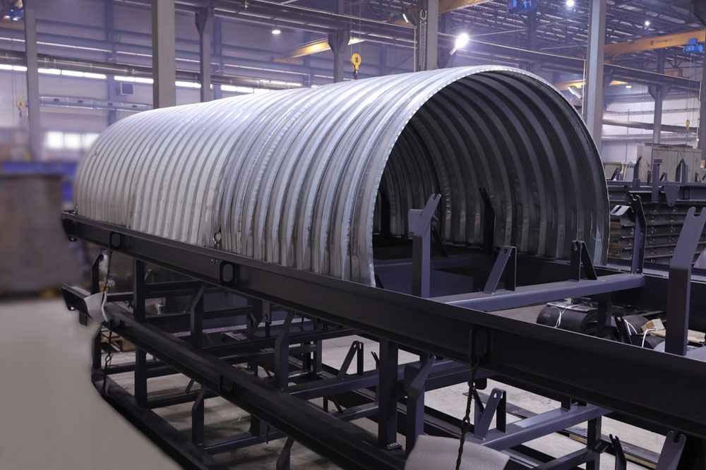 Арочная форма придаёт сооружению завершённый и современный облик. Укрытия из профнастила гармонично вписываются в промышленный ландшафт, подчёркивая аккуратность и технологичность производственного участка.