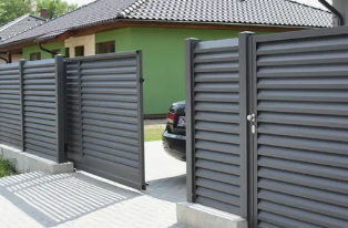 Калитки и ворота — это современное решение для частных и коммерческих территорий, оформленных в стиле заборов-жалюзи. Конструкция сочетает в себе жёсткость металлического каркаса и визуальную лёгкость горизонтальных ламелей. Благодаря продуманной системе зазоров достигается эффект полной приватности при сохранении вентиляции. Поверхность устойчива к коррозии, выцветанию и механическим повреждениям, что особенно важно для уличной эксплуатации. Изделия доступны в разных цветах и форматах — подбираются под габариты проёма и архитектурный стиль участка. Это не просто проход или въезд, а полноценный элемент дизайна ограждения.