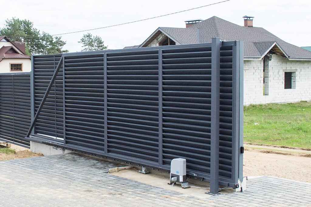 ◄ Экономия пространства – створка движется вдоль забора и не требует дополнительного места для открытия, что особенно удобно на узких участках и в условиях ограниченной территории.